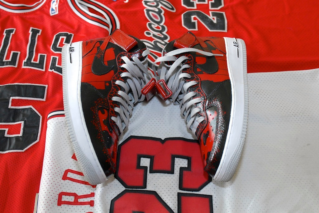 Every inch of these Air Force 1s was inspired by the city of Chicago. From the area codes to the camo on the toe box, every design was freehanded. No stencils, no sketches, just pure paint and a brush.